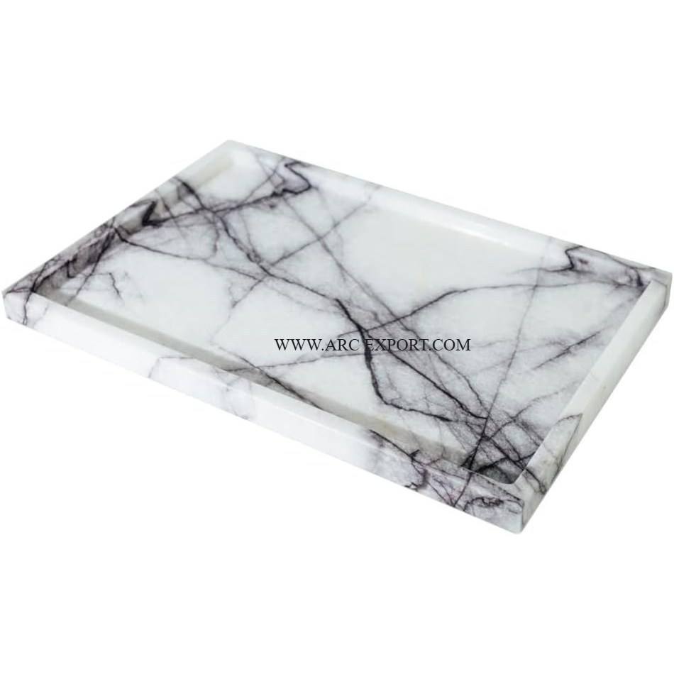ถาดเสริฟอาหารและชาประดับโต๊ะทำจากอลูมิเนียมสีเงินถาดเสิร์ฟอาหารลายหินอ่อนสีขาวอุปกรณ์ครัว