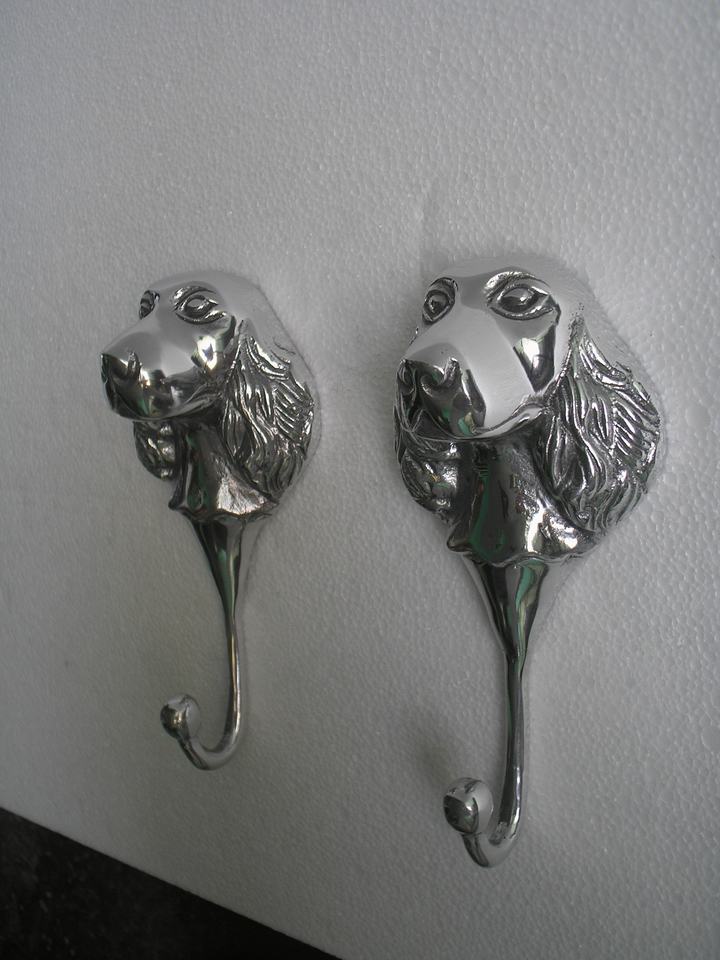 เสื้อโค้ทหัวสุนัขสแปเนียลทำจากอลูมิเนียมมีตะขอแขวนติดผนังโมเดลรูปสัตว์ในของขวัญเทคนิคการหล่อ