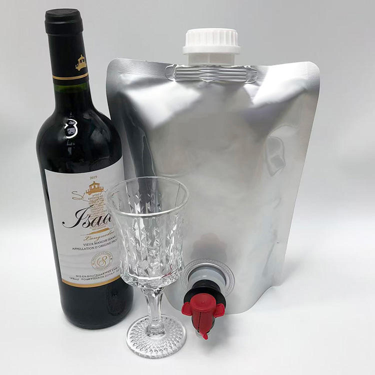 ถุงอลูมิเนียมแบบตั้งพร้อมพวยขนาดใหญ่พร้อมถุงปิดผนึกวาล์วถุงความร้อนสำหรับเครื่องดื่มน้ำผลไม้ไวน์แดง