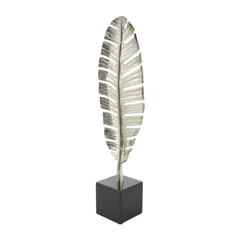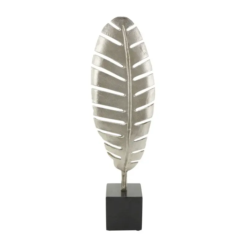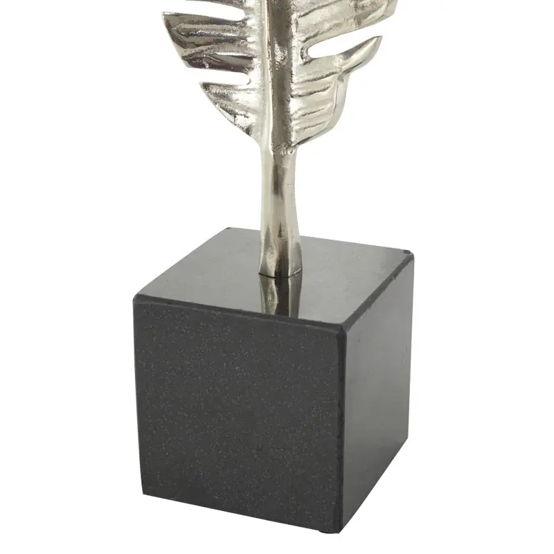 รูปปั้นใบเดี่ยวตั้งอลูมิเนียมพร้อมฐานหินอ่อนสีดำรูปปั้นขัดเงาทันสมัยอลูมิเนียมสีทองหรือสีเงินแบบตั้ง