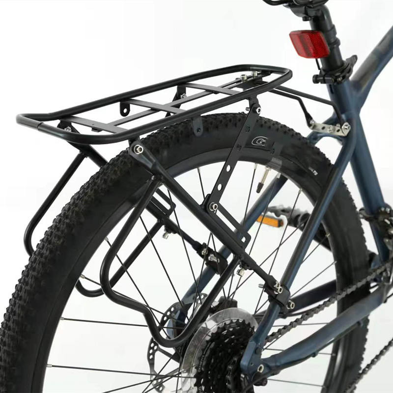 แร็คหลังจักรยานอะลูมิเนียมเหล็กสีดำ ทนทาน ติดตั้งบนพื้นผิว สำหรับจักรยานเสือภูเขา ที่วางสัมภาระ อุปกรณ์เสริมสำหรับผู้โดยสาร รุ่น 102
