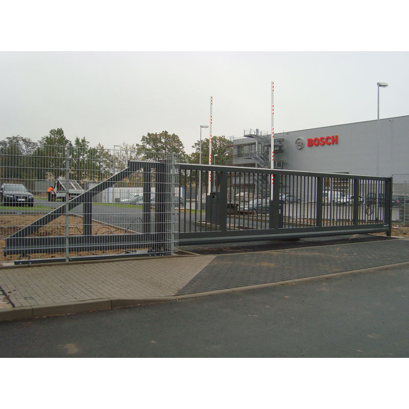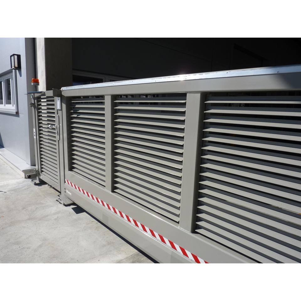 Aluminum Steel Freestanding Sliding Gates Polyamide Rollers State-Of-The-Art Control Technology EN Standard 13241-1