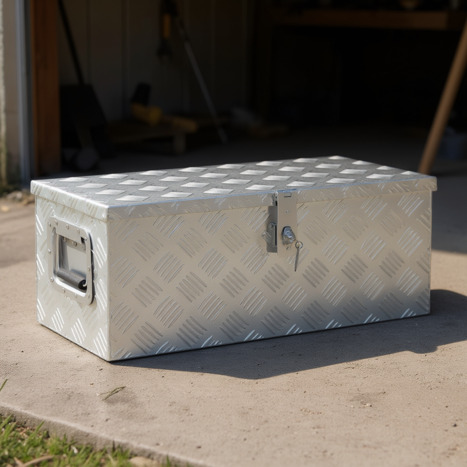 กล่องเก็บของอลูมิเนียม 27.6x12.2x10.6 นิ้ว กล่องเครื่องมือ กันน้ำ ปิดด้วยตัวล็อค สำหรับเก็บเครื่องมือในโรงรถ