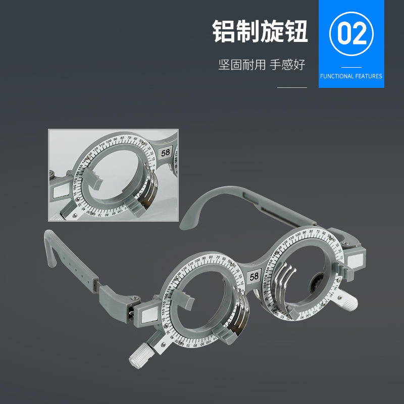 กรอบแว่นอลูมิเนียมสำหรับตรวจสายตา 52-70Pd ที่ยึดเลนส์ปรับได้ สีเทา ใช้งานด้วยมือ อุปกรณ์ตรวจวัดความสามารถในการมองเห็น