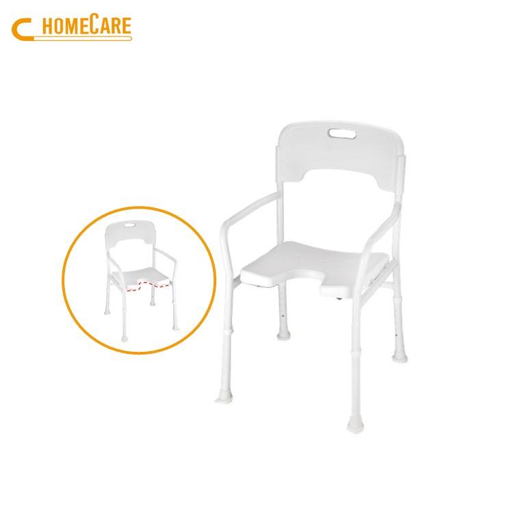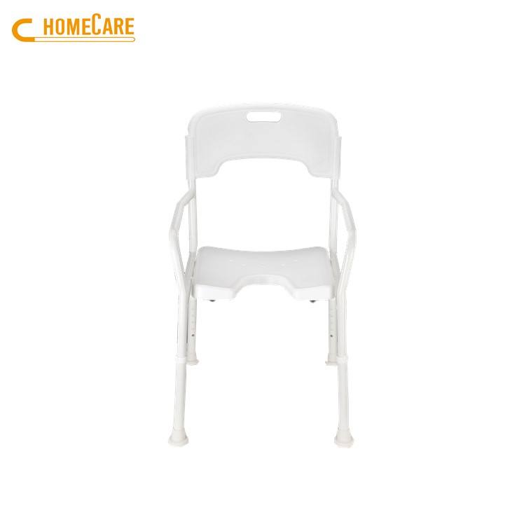 ที่นั่งอาบน้ำที่ถูกสุขอนามัยสำหรับผู้สูงอายุอลูมิเนียมสีขาวพร้อมด้านหลัง