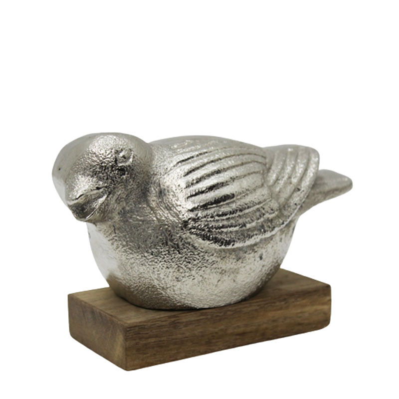 นกสแปร์โรว์ไม้ทำจากอลูมิเนียมและฐานเป็นโลหะสีเงินสำหรับวางบนโต๊ะและตกแต่งบ้าน