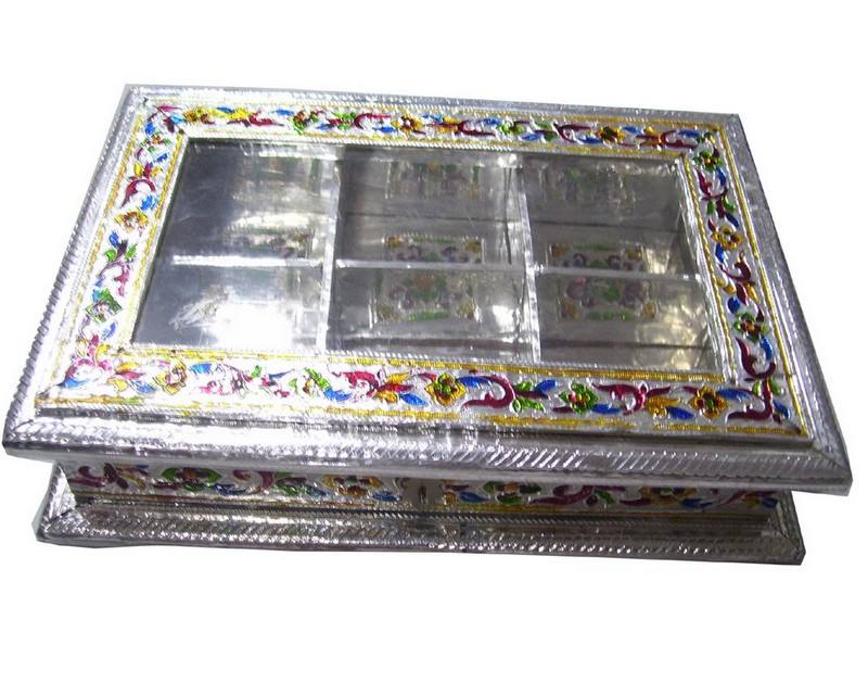 กล่องของขวัญตกแต่งผลไม้แห้งทำจากไม้อะลูมิเนียมกล่องของขวัญอินเดีย