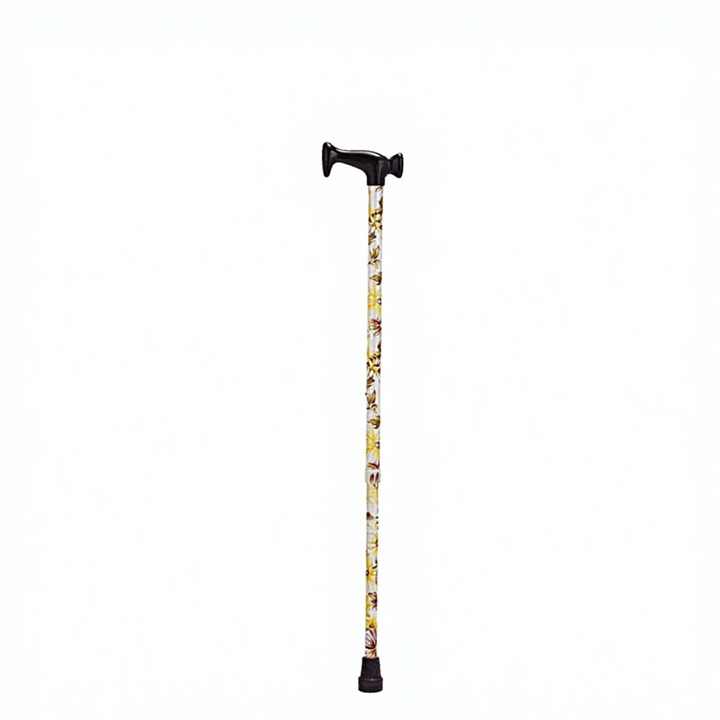 ไม้เท้าอลูมิเนียมพิมพ์ลายสีเหลืองไม้เท้าอลูมิเนียมสำหรับผู้สูงอายุ