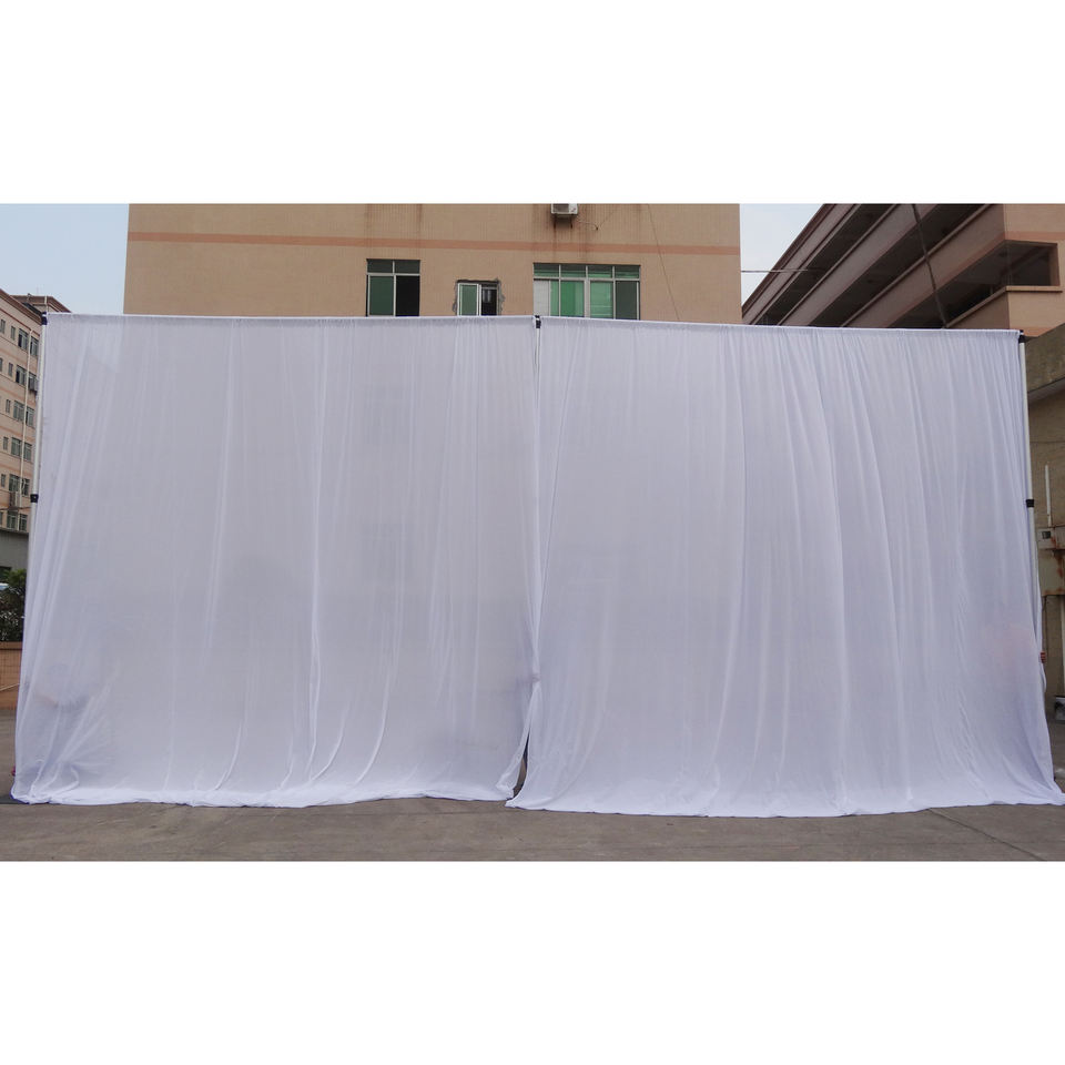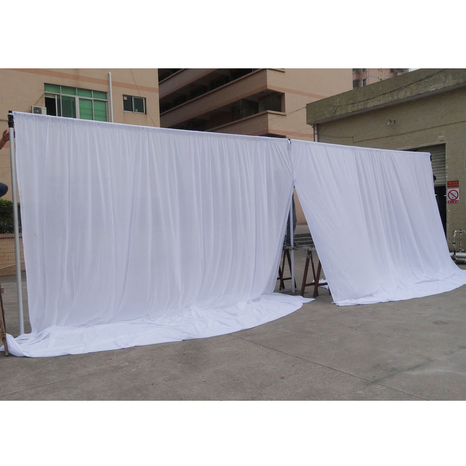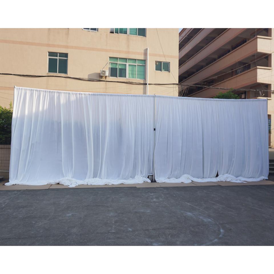 ขาตั้งฉากหลังอะลูมิเนียมสีเงินแบบปรับได้ พร้อมระบบท่อและผ้าม่าน สำหรับงานแต่งงานและงานแสดงสินค้า