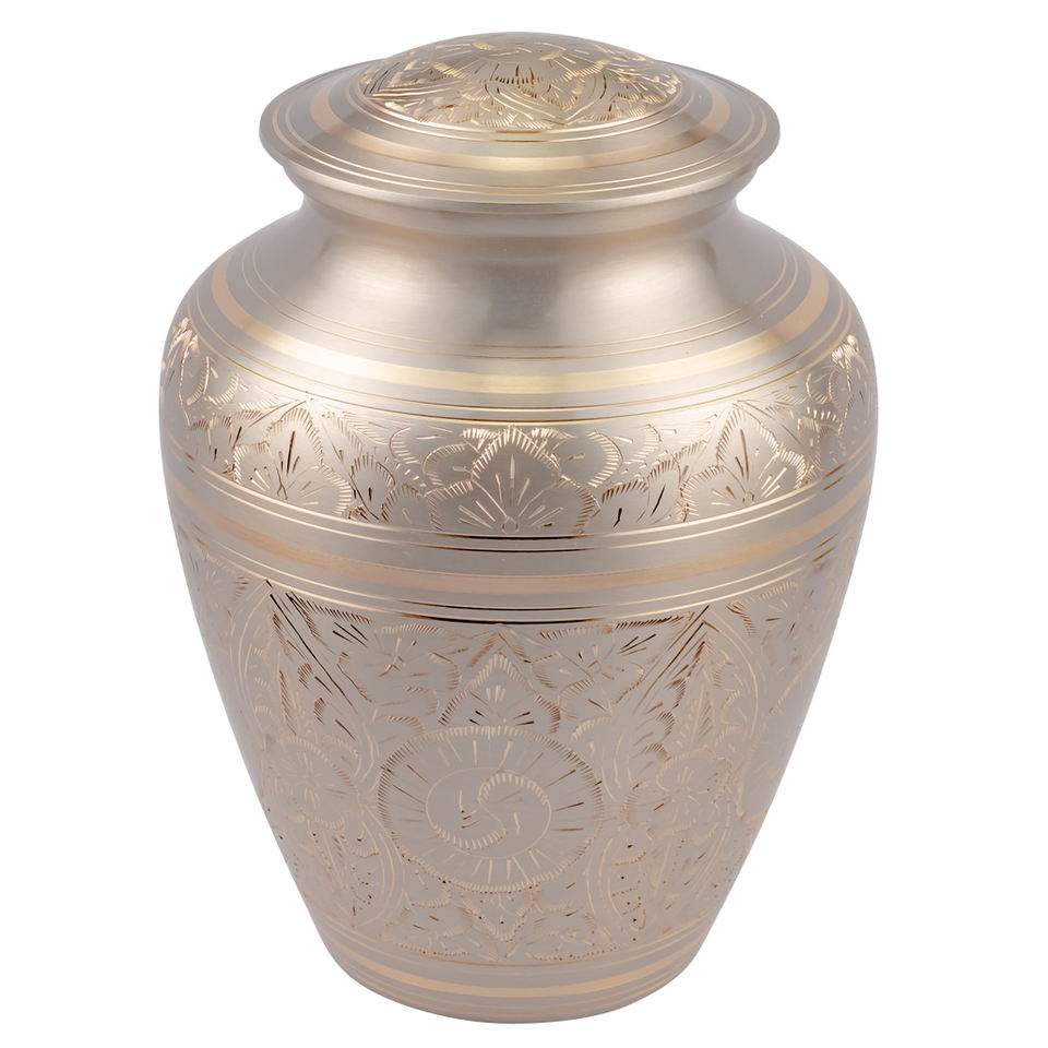โกศบรรจุอัฐิอะลูมิเนียมลายพระอาทิตย์สีทอง โกศอะลูมิเนียมร่วมสมัยลายพระอาทิตย์สีทอง