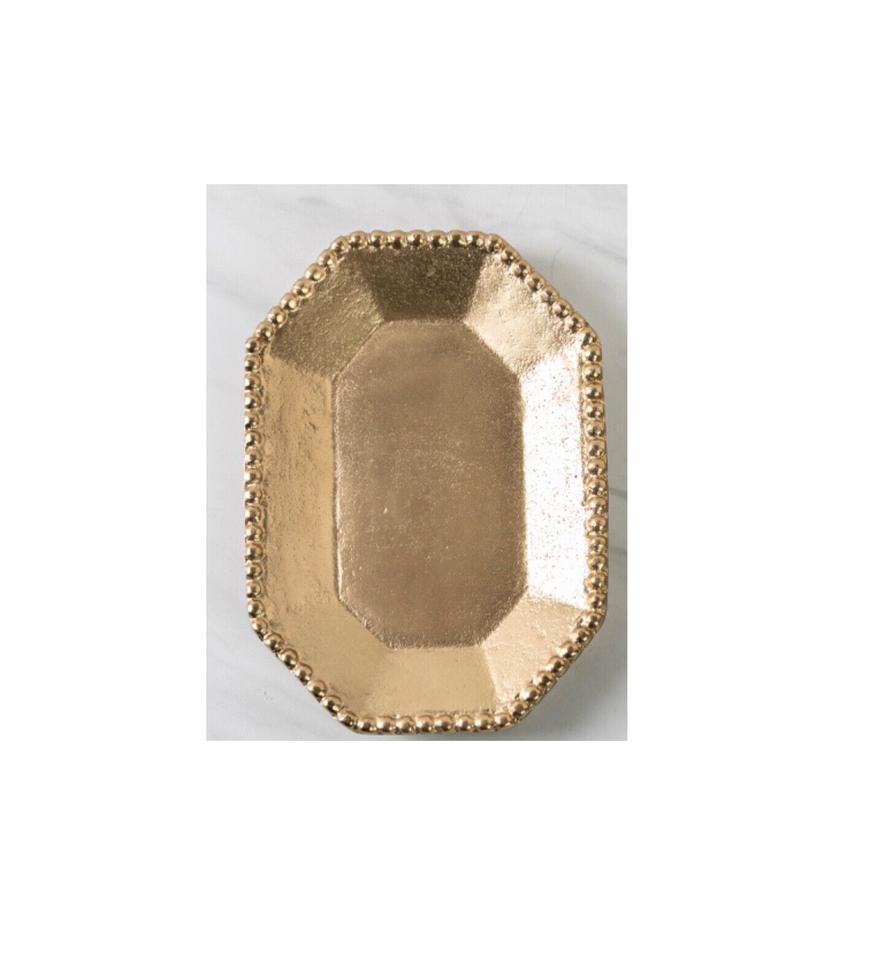 ถาดเสิร์ฟโลหะลายทองหรูหรา ขอบประดับลูกปัด รูปทรงแปดเหลี่ยม สำหรับโต๊ะกาแฟ ถาดเสิร์ฟทองเหลืองโบราณ