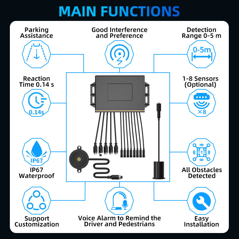 อัลเวย์แคร์ R300 ระบบกันน้ำ IP67 เซ็นเซอร์ถอยหลังแบบอัลตราโซนิก 1-8 จุด มองเห็นในเวลากลางคืน ป้องกันการชน ระบบช่วยถอยหลังรถยนต์ AHD