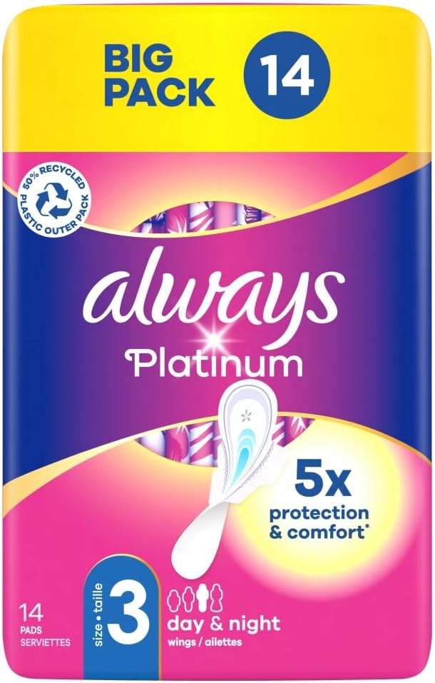 ออลเวย์ส แพลตตินั่ม ไนท์ (ไซส์ 3) คอตตอน วิงส์ 14 แผ่น X 4 ชิ้น พร้อมระบบควบคุมกลิ่น DE