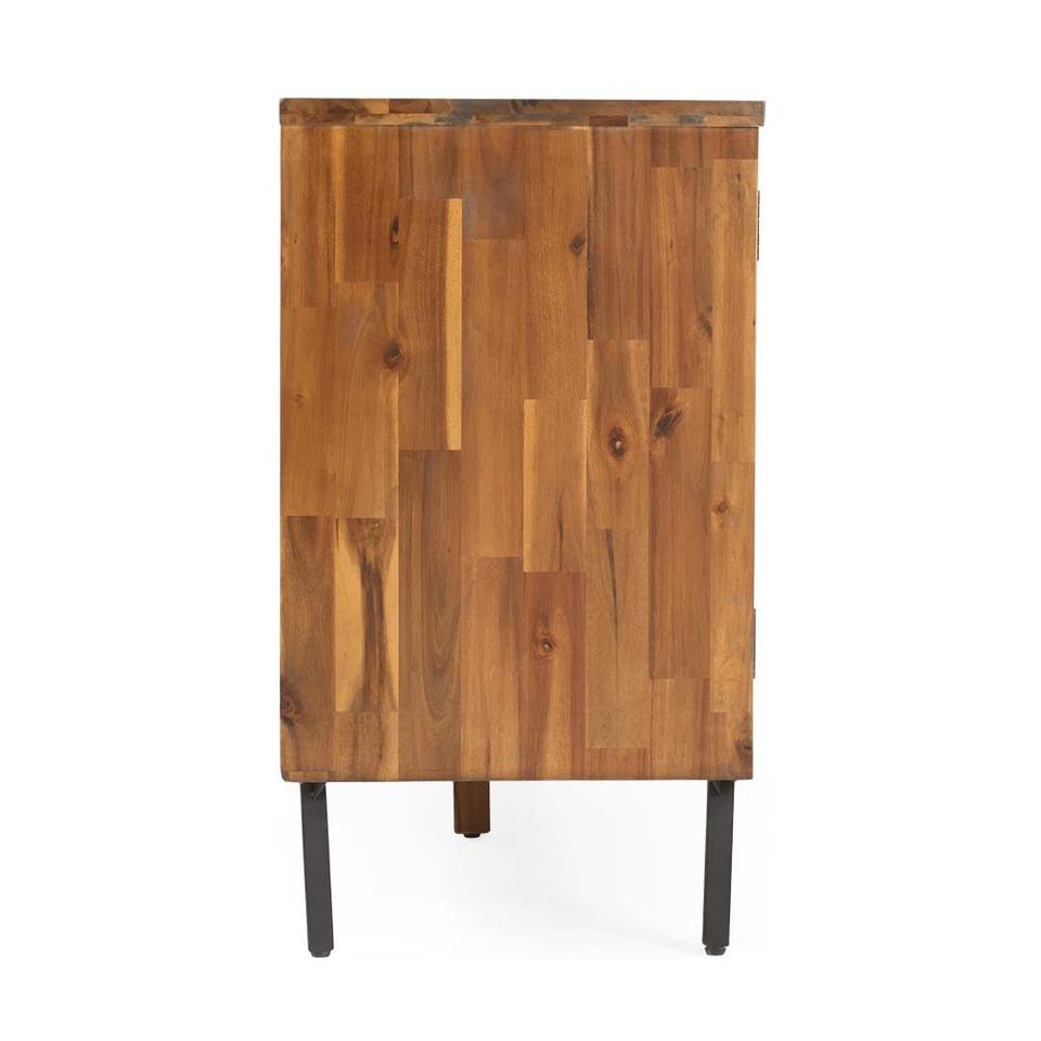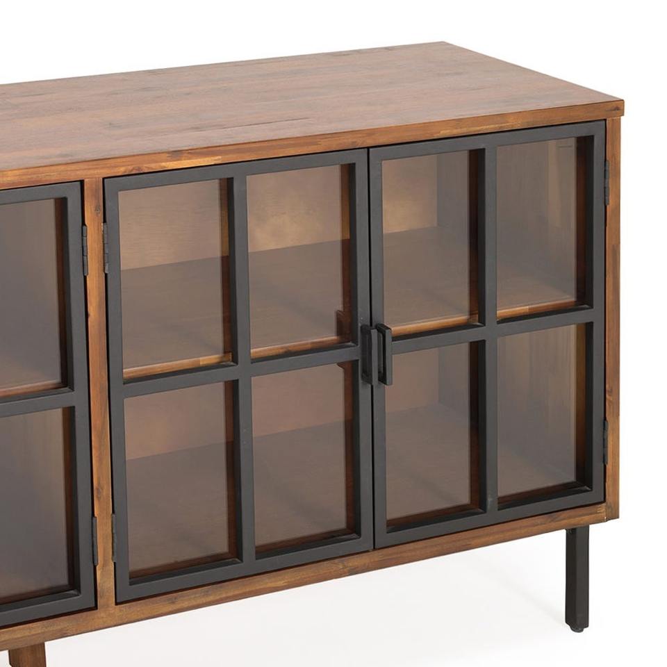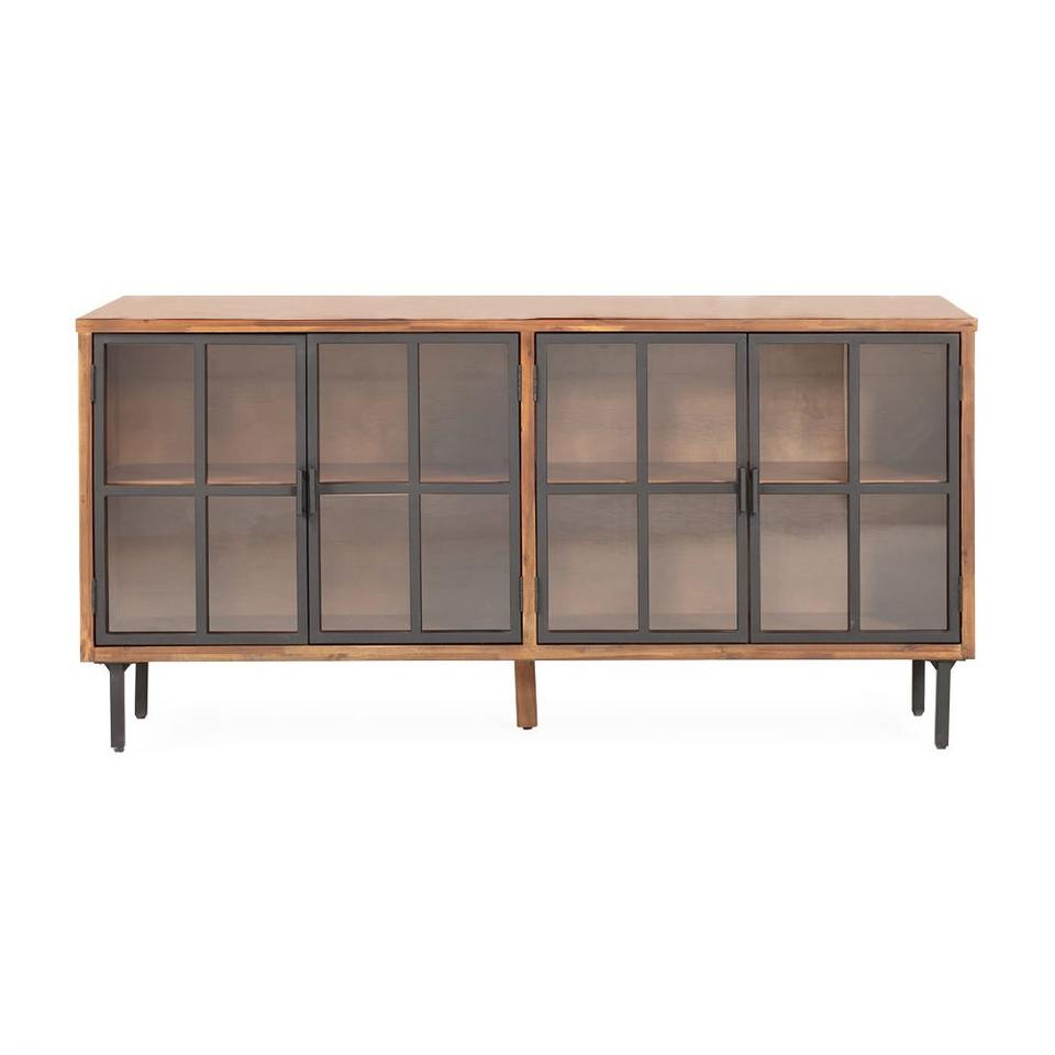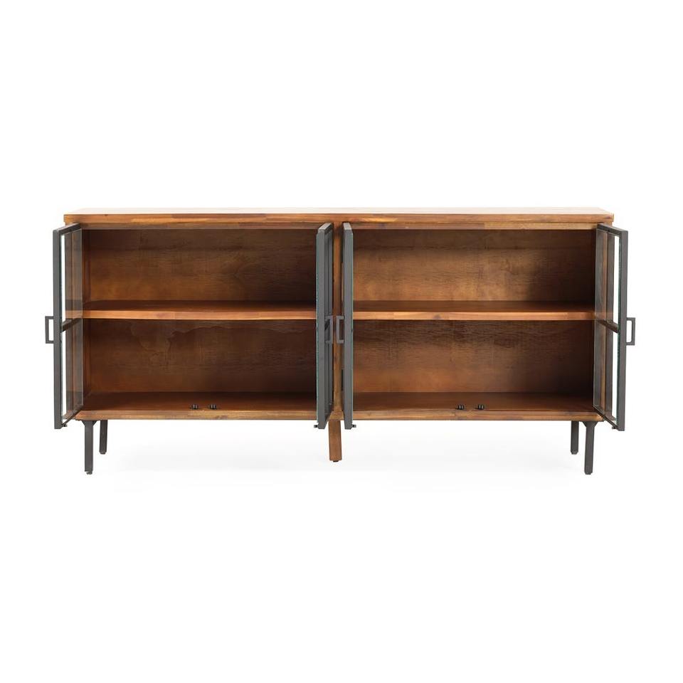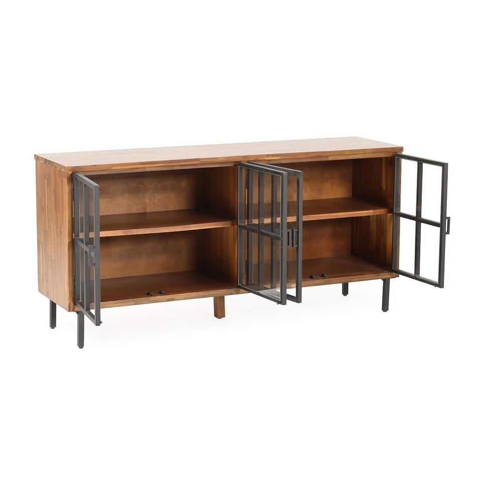 Alwin ตู้ด้านข้าง4ประตู, ไม้มะฮอกกานีสีน้ำตาลและสีดำห้องนั่งเล่นไม้ Minimalist 0601774บุฟเฟ่ต์ที่เรียบง่าย