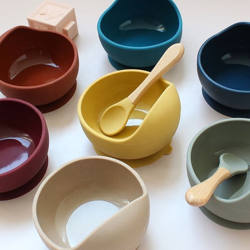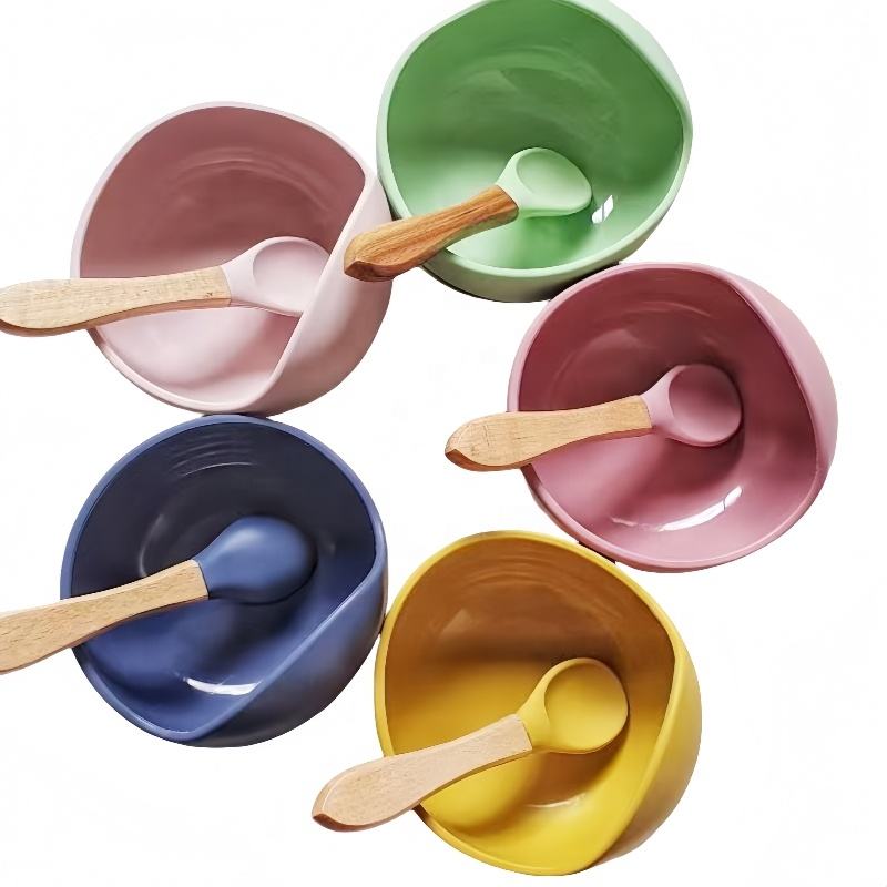 ชามซิลิโคนสำหรับเด็กพร้อมช้อนการผลิต