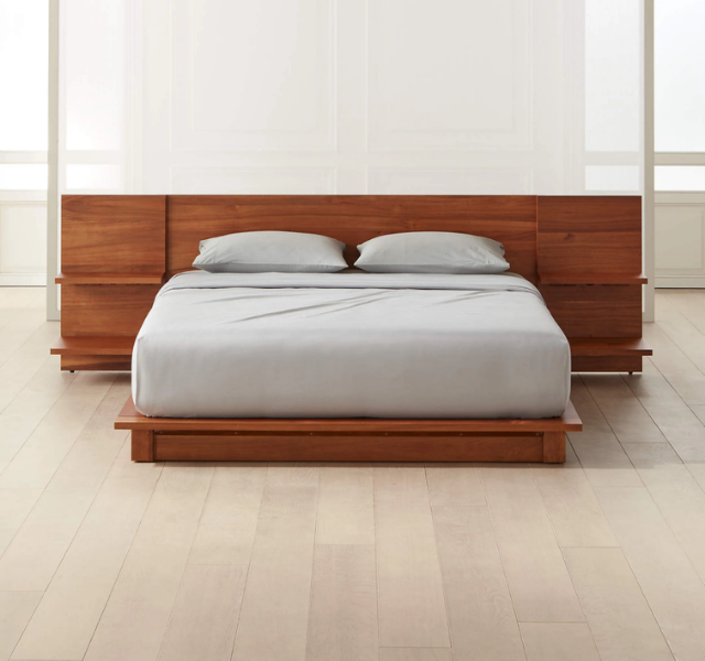 เตียงนอนลอยตัวไม้สักแท้ทรงโมเดิร์น Amangiri พร้อมชั้นวางหัวเตียงในตัว ดีไซน์มินิมอล ขนาดคิงไซส์ รับประกัน 3 ปี
