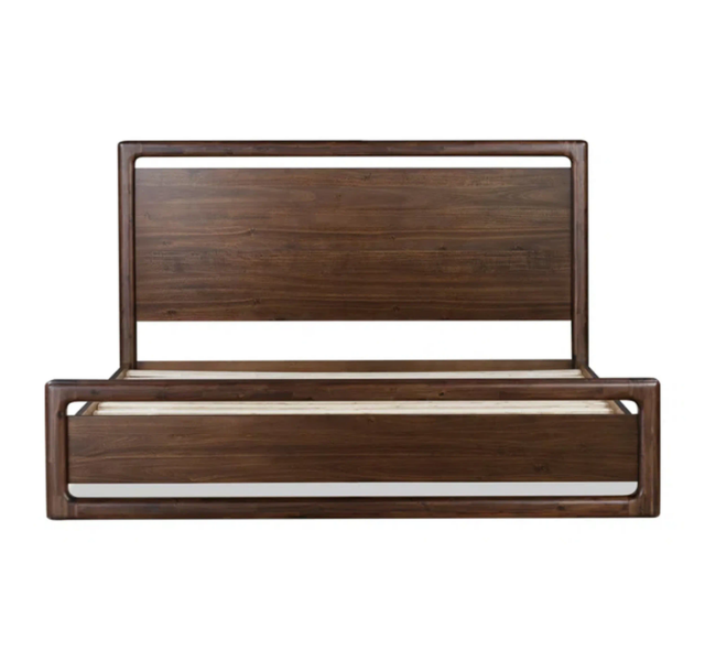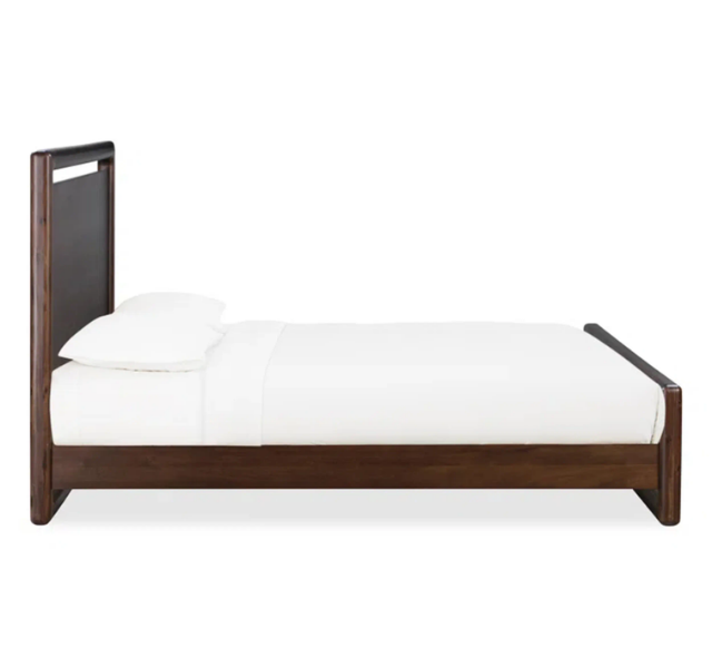 โครงเตียงไม้สักแท้ Amangiri หุ้มเบาะ ดีไซน์มินิมอล เตียงแบบแพลตฟอร์มเตี้ย หัวเตียงแผ่นหนา สไตล์ร่วมสมัยสำหรับห้องนอน