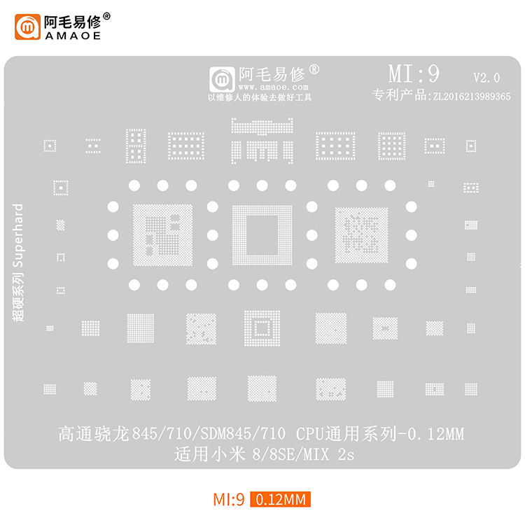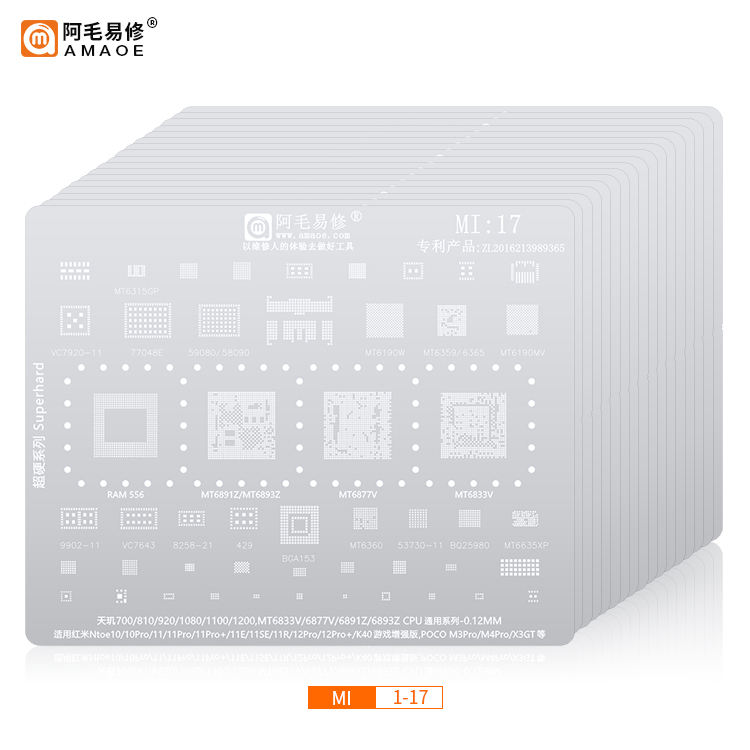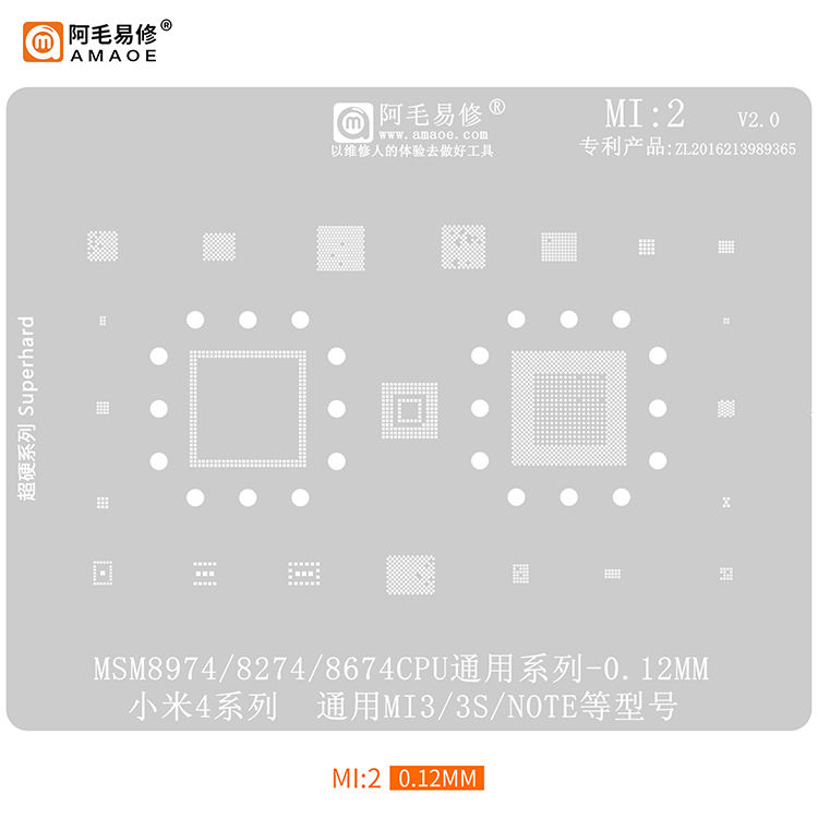 แผ่นสเตนซิลเหล็ก Amaoe BGA สำหรับรีบอลล์ ขนาด 0.12 มม. สำหรับซ่อม CPU โทรศัพท์มือถือ ซีรีส์ Redmi NOTE4/4X/Pro