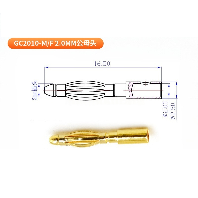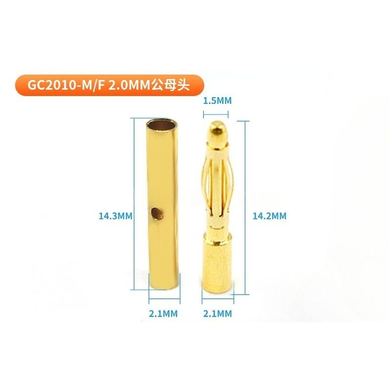 ชุดขั้วต่อทดสอบแบบกล้วย Amass GC2010-M/F ขนาด 2.0 มม. ทำจากทองเหลือง ชุบทอง 15A-30A สำหรับทดสอบมอเตอร์/ESC รุ่นเล็ก