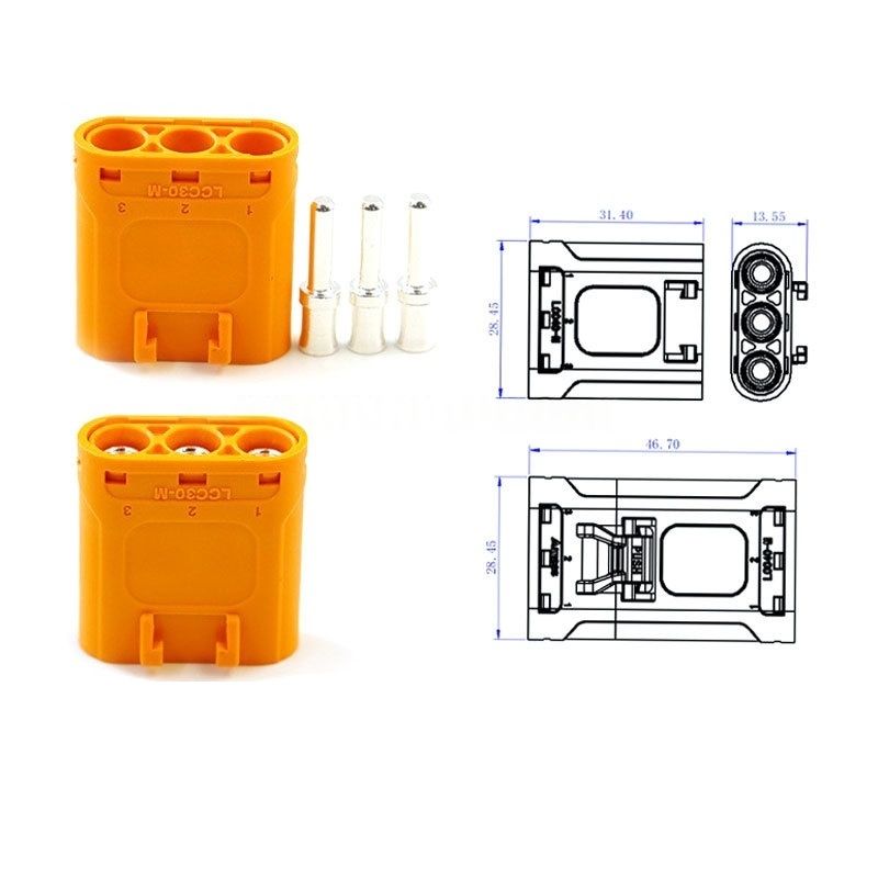 ชุดขั้วต่อล็อค Amass LCC30-M LCC30-F พร้อมสายไฟ - ปลั๊กแบบหนีบทำจากทองเหลืองชุบเงินสำหรับชุดแบตเตอรี่ลิเธียม