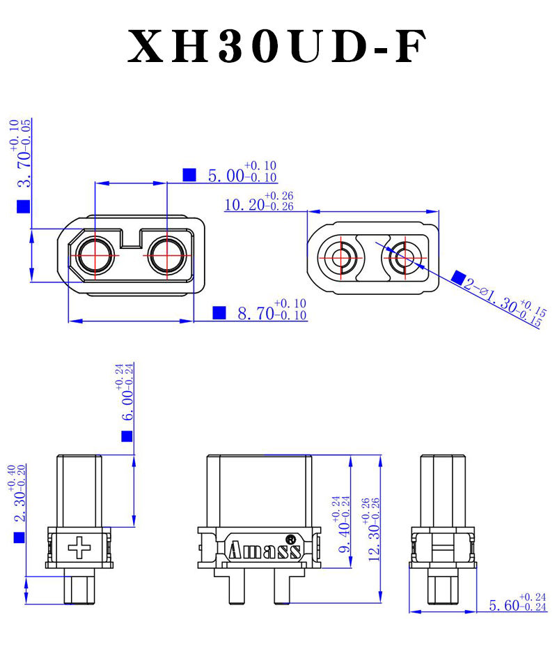 Amass XT30UD-M /f 15A-30A โมดูลเชื่อมต่อรายการพลังงานสูงในปัจจุบันปลั๊กชุบทองสำหรับโดรนขนาดเล็กและการควบคุมแบตเตอรี่ Lipo