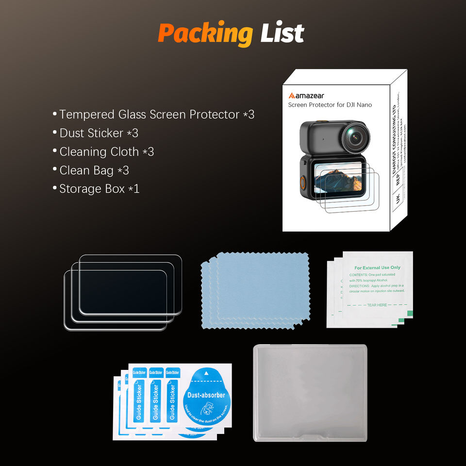 Amazear ฟิล์มกระจกนิรภัย3-in-1อุปกรณ์เสริมกล้องแอ็คชั่นไวต่อการสัมผัสสำหรับ DJI Nano