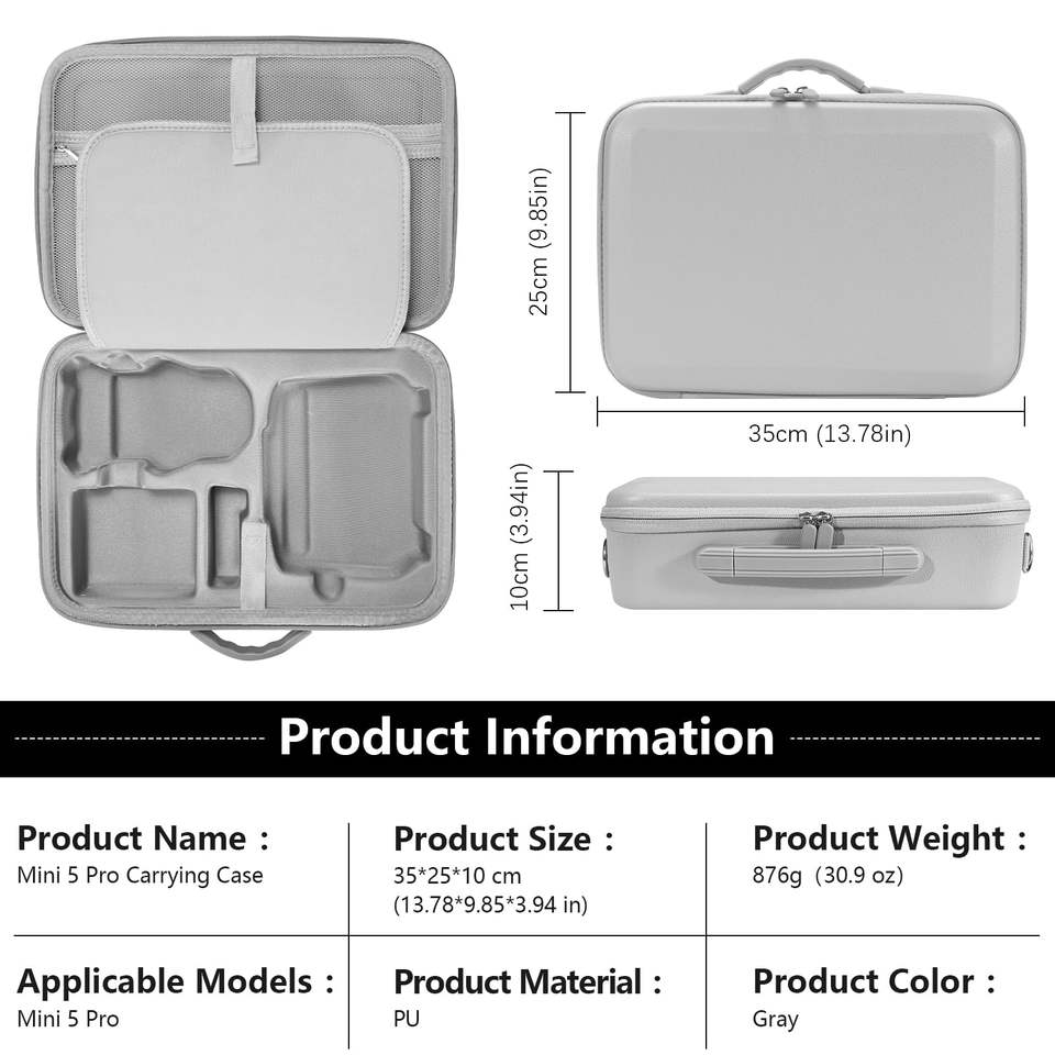 Amazear เคสกันกระแทกสำหรับ DJI MINI 5 Pro Drone, กระเป๋าหนัง PU ใส่ของแบบพกพาที่ปลอดภัย