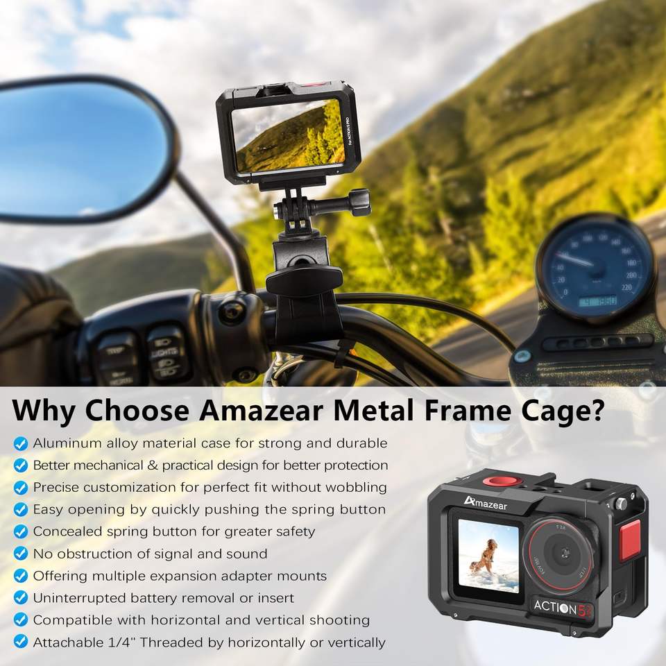 Amazear กรงกรอบป้องกันแบบปลดเร็วน้ำหนักเบาคุณภาพสูงสำหรับอุปกรณ์เสริมอลูมิเนียมอัลลอยด์ Osmo Action 5 Pro
