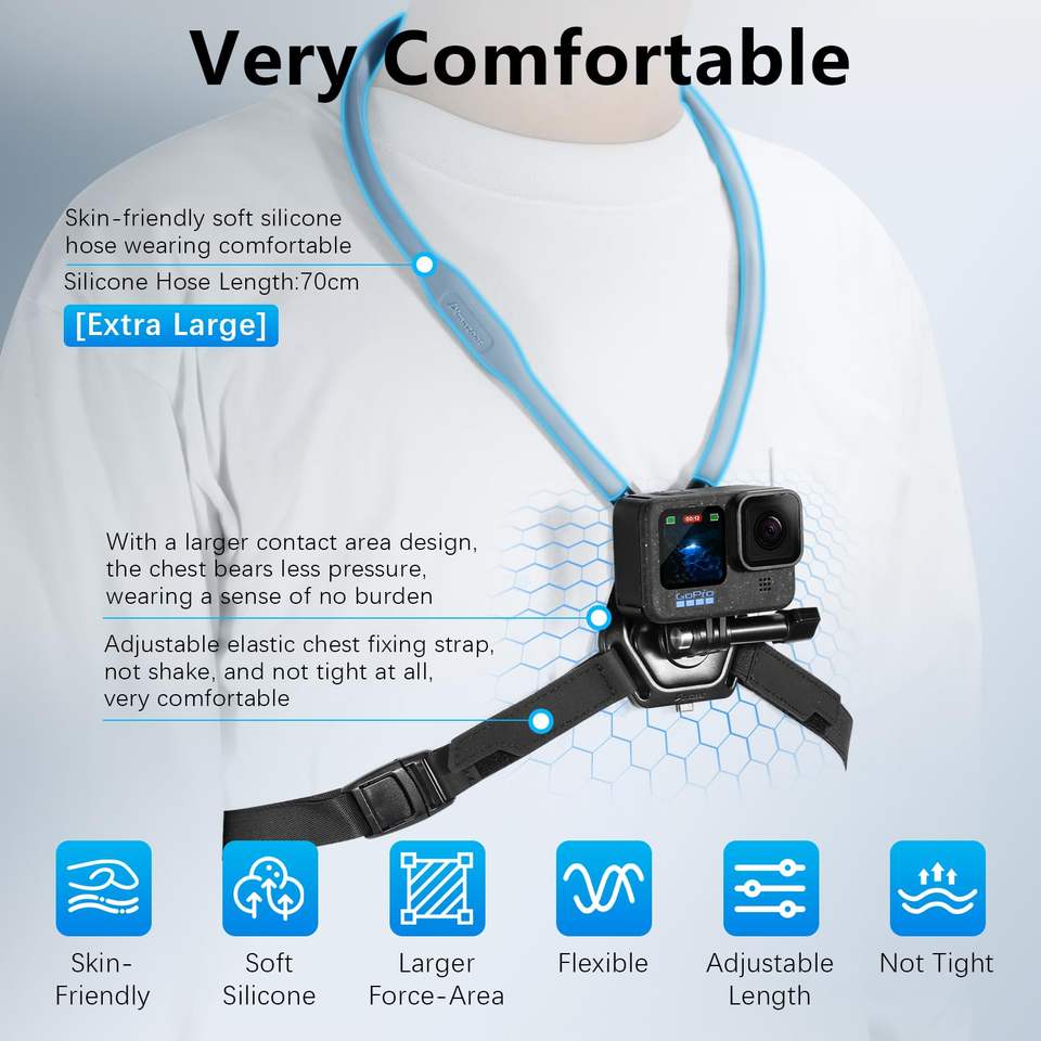Amazear ขาตั้งซิลิโคนแม่เหล็กอเนกประสงค์แบบปรับได้, ที่ยึดหน้าอกสำหรับแอ็คชั่น inster Osmo แบบแฮนด์ฟรี