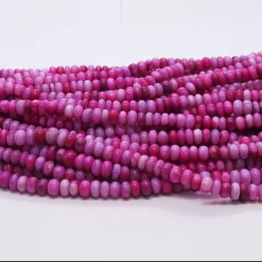 ชื่อสินค้า:ลูกปัดโอปอลสีชมพู AAA ทรงรอนเดลเรียบ