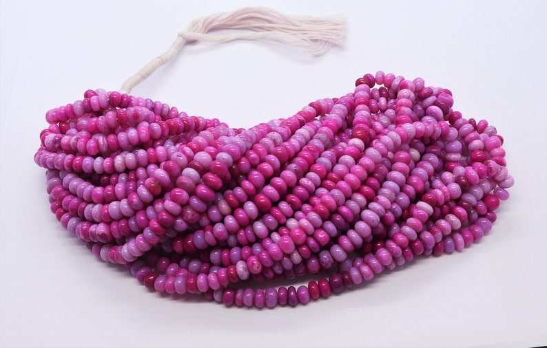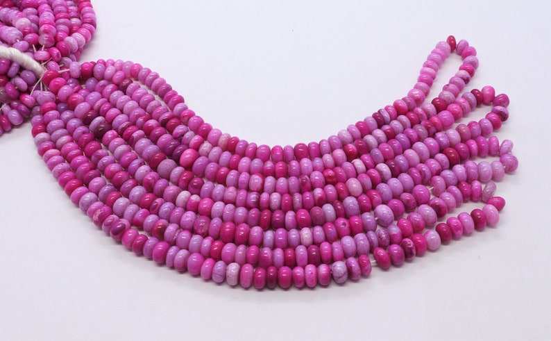 ลูกปัดโอปอลสีชมพู AAA ทรงรอนเดลเรียบ