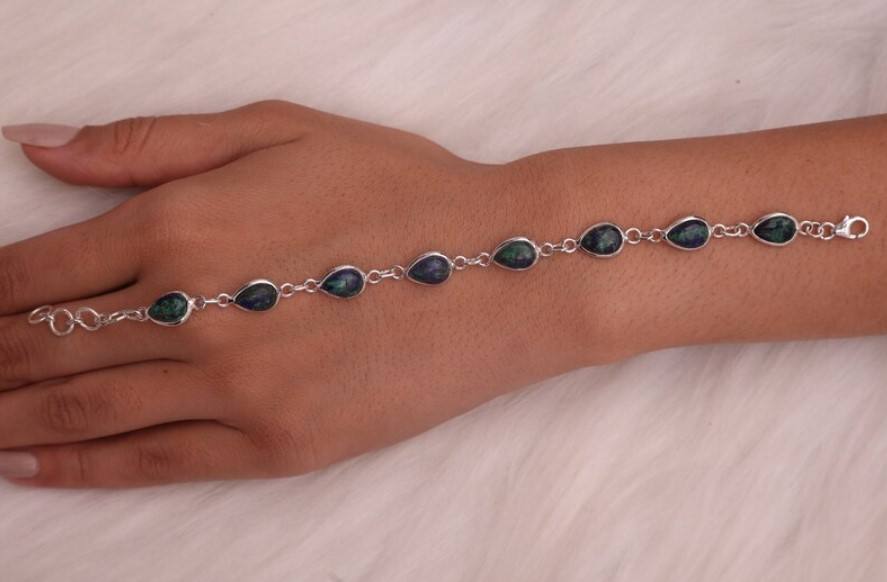 ชื่อผลิตภัณฑ์:สร้อยข้อมือเงินพลอย Azurite ธรรมชาติ