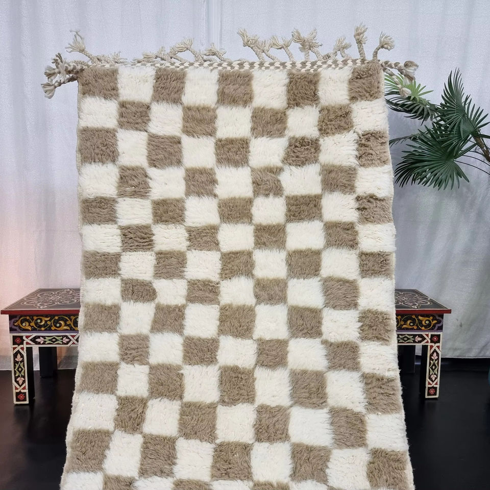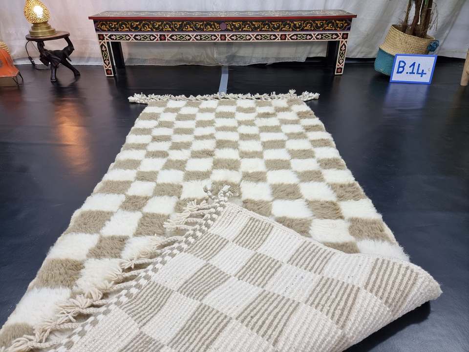 Beniourain พรมปูพื้นขนสัตว์สีเบเบอเบอร์3x6งานทำมือลายนามธรรมลายตารางหมากรุก