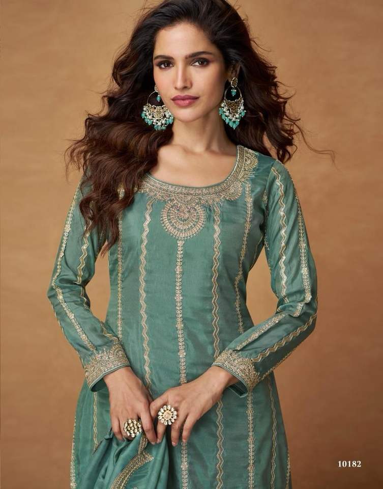 ชื่อผลิตภัณฑ์:ชุดซาลวาร์ผ้าไหมออร์แกนซ่าผ้าไหมสีซิมาร์ปักลาย