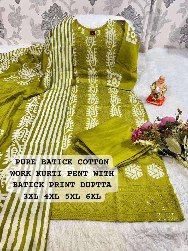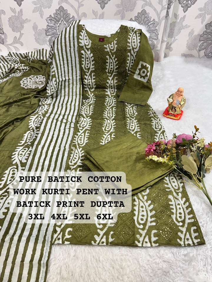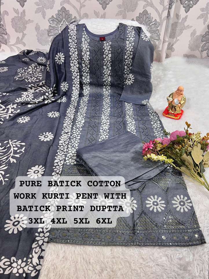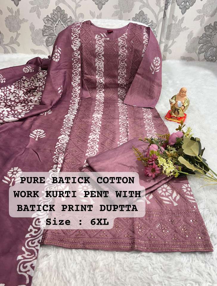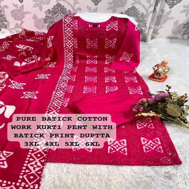 Amazing Viscose With Batik Print And Hand Work Kurti Pant And Dupatta