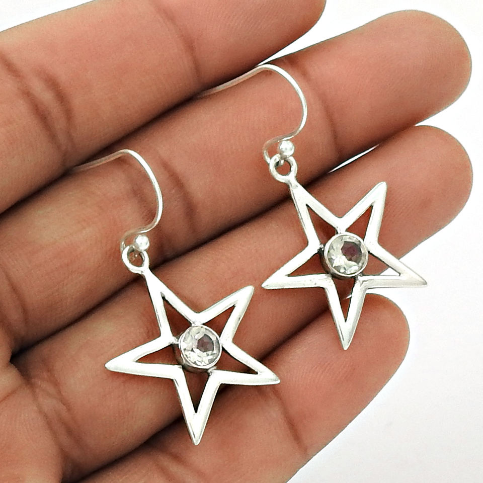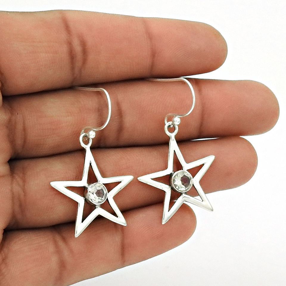 ต่างหูประดับพลอยบุษราคัมสีฟ้าธรรมชาติแบบห้อย925เงินสเตอร์ลิงทำมือเครื่องประดับ Boho