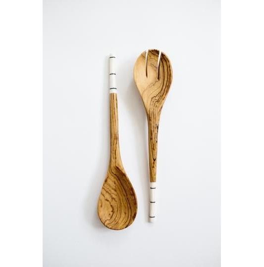 ชุดช้อนส้อมสลัดไม้ดีไซน์สวยงาม พร้อมด้ามจับสีดำสำหรับโต๊ะอาหาร