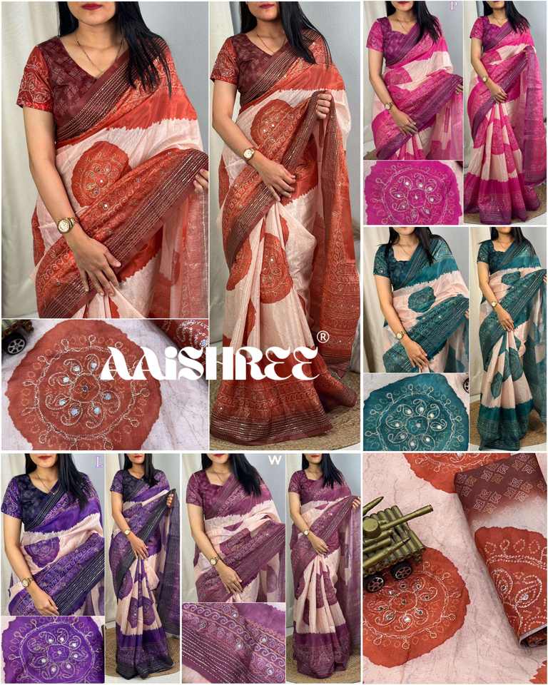 ชุดเดรสผ้าส่าหรีผ้าไหมลาย rangeen, เสื้อเบลาส์พร้อมมือและกระจกพิมพ์ดิจิตอลทำงานแฟชั่นผู้หญิง