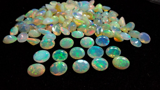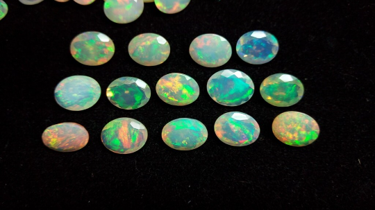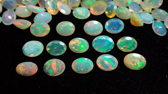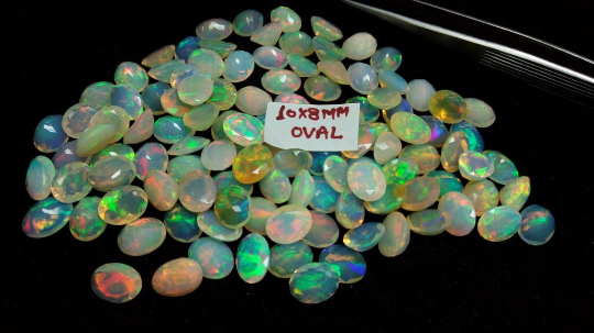 หินโอปอลทรงหลังเบี้ยโอปอลเจียระไนเป็นรูปไข่ขนาด10x8มม. พลอยโอปอลเอธิโอเปียขัดเงาเรียบสำหรับทำเครื่องประดับ