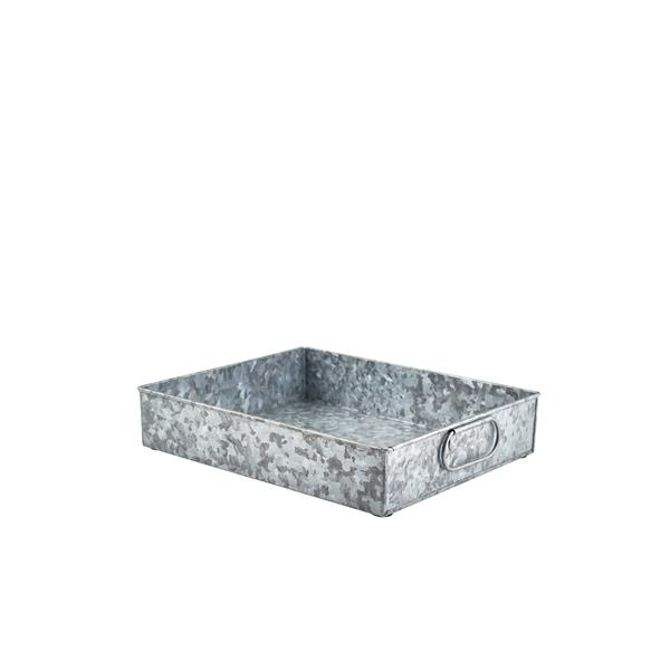 ถาดเสิร์ฟเหล็กชุบสังกะสีสุดเก๋พร้อมหูจับ สไตล์บ้านไร่แบบเรียบง่าย สำหรับเสิร์ฟอาหารและตกแต่งบ้าน ใช้กับเครื่องล้างจานได้