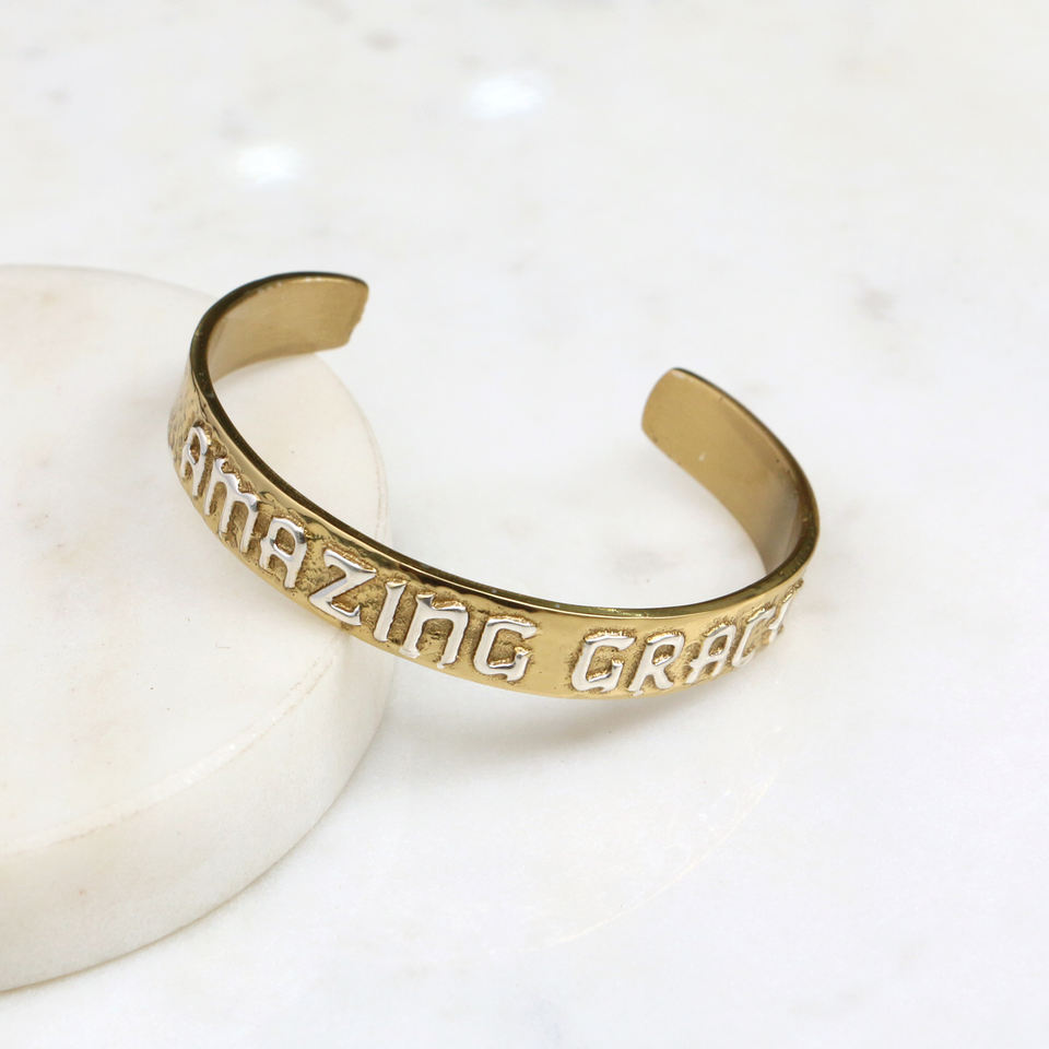 กำไลข้อมือทองเหลือง Amazing Grace - เครื่องประดับคริสเตียนทำมือแบบปรับได้ - ของขวัญทางศาสนาสร้างแรงบันดาลใจสำหรับผู้หญิง