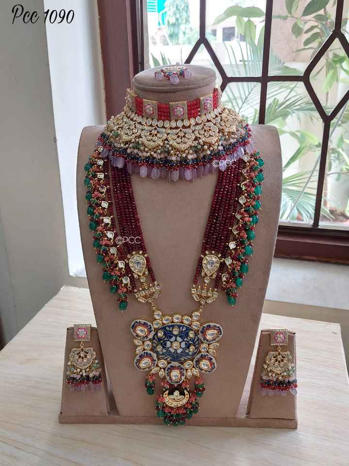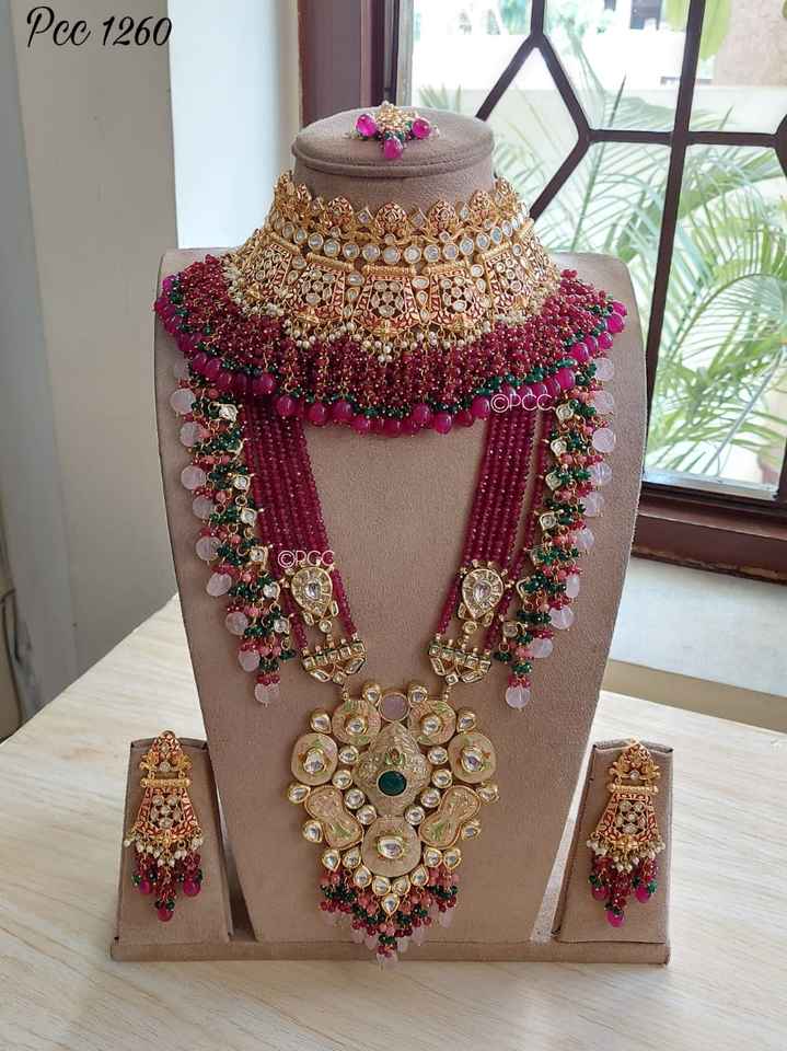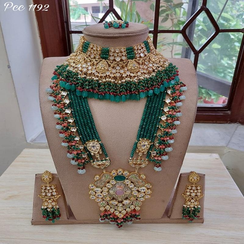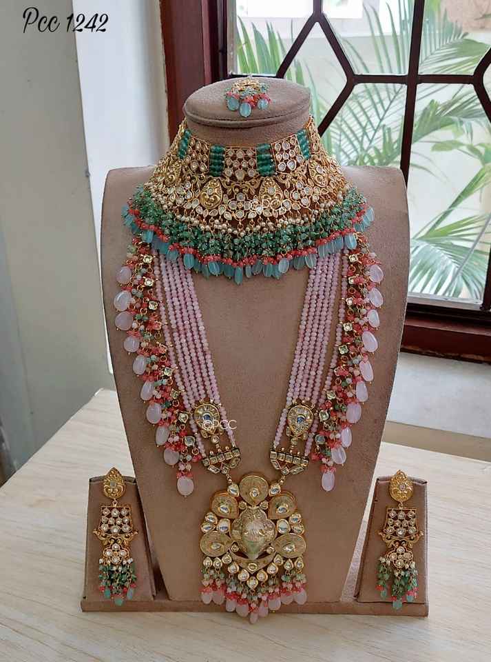 ชุดเครื่องประดับเจ้าสาวอินเดียสุดอลังการแบบ Pachi Kundan พร้อมสร้อยคอและต่างหูยาว ราคาถูกที่สุดโดย M Creation