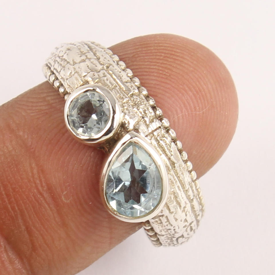 แหวนสุดเจ๋งมาพร้อมกับพลอยบุษราคัมสีฟ้าของลอนดอนใน925แหวนแต่งงานทำด้วยมือสีเงินสเตอร์ลิงและอัญมณีเจียระไนทรงกลม