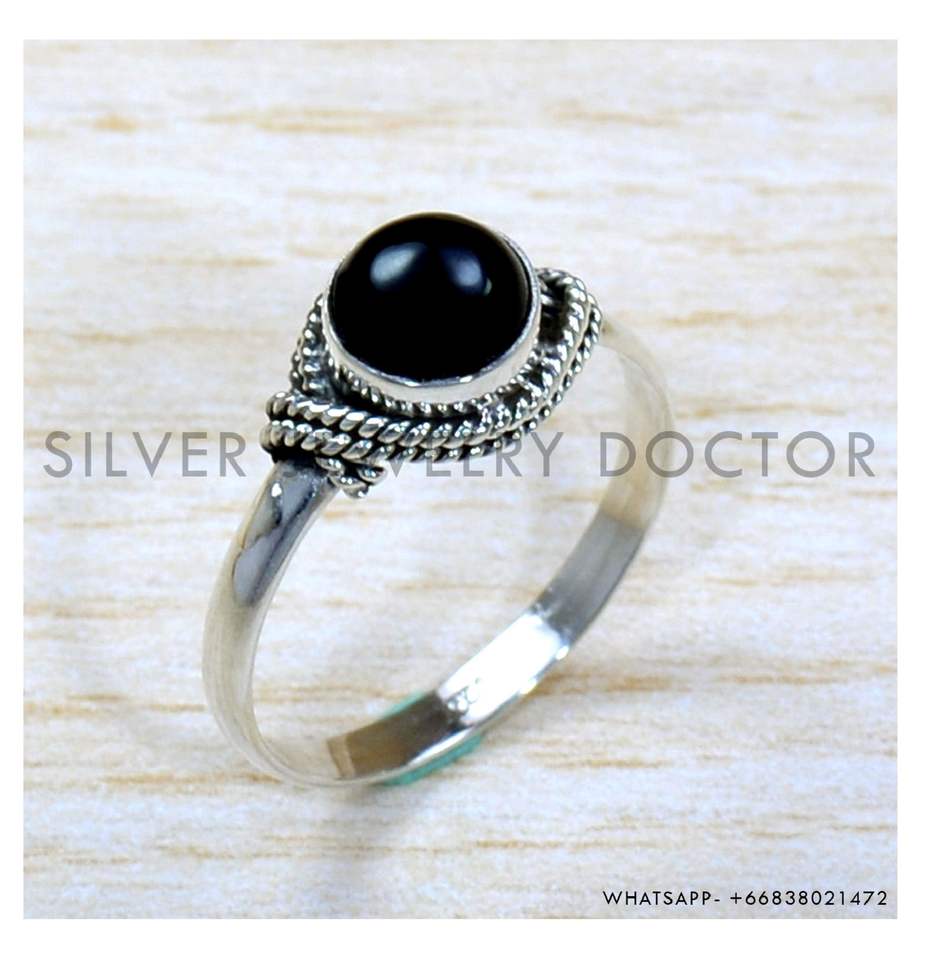 แหวนเงินแท้ 925 ทำมือสำหรับผู้หญิง ประดับด้วยพลอยออนิกซ์สีดำธรรมชาติ ปรับแต่งได้ สไตล์วินเทจ สำหรับงานแต่งงาน ขายส่งเครื่องประดับ