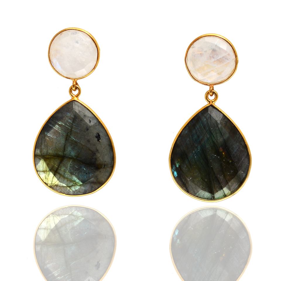 ต่างหูเงินแท้ 925 ชุบทอง ประดับมูนสโตนสีรุ้ง ดีไซน์วินเทจ ประดับเพชรและมุก สำหรับงานแต่งงาน สวยหรู