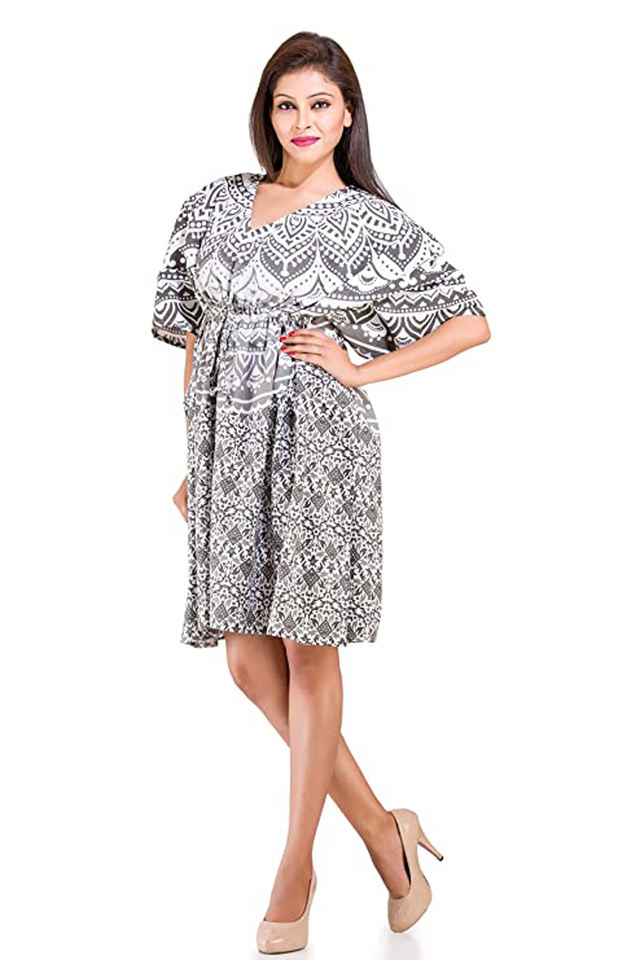 ชุดเดรสคาฟตันทรงเข้ารูปพิมพ์ลายผ้าเรยอนของผู้หญิงชุดเดรสคาฟตันมีสไตล์ผ้าคอตตอน