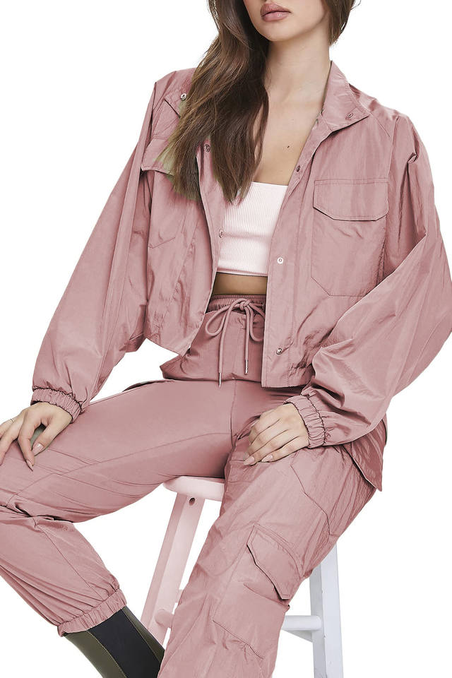 Amazing New Crinkle Lightweight Mesh Lining Adjustable and Shell New Baby Pink Zipper Jacket Pants Tracksuit