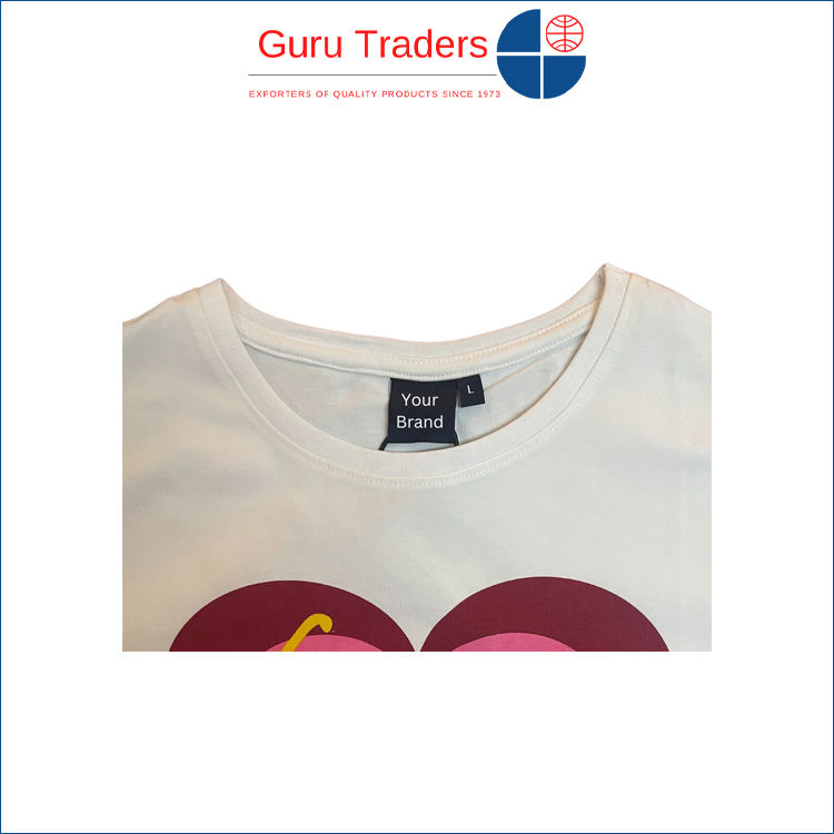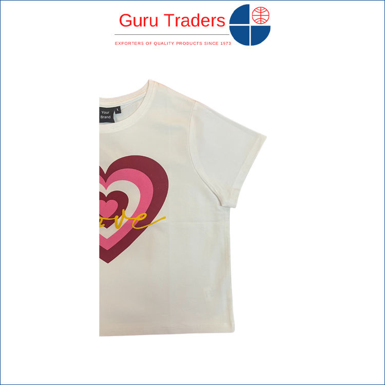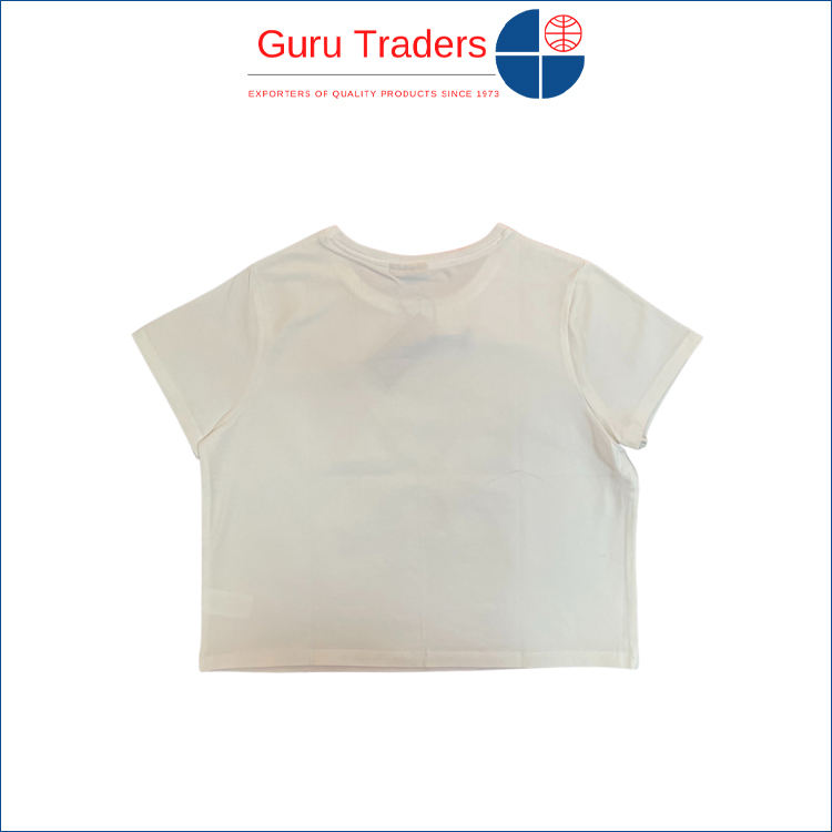 เสื้อยืดแขนสั้นพิมพ์ลายที่หน้าอกสีพื้นทำจากวัสดุคอตตอน100%