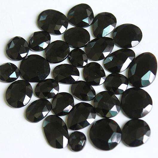 พลอยสปิเนลสีดำคุณภาพเยี่ยม รูปทรงไม่สม่ำเสมอ แบบโรสคัท ทรงเหลี่ยมคาโบชอง ธรรมชาติจากประเทศไทย ได้รับการรับรองสำหรับทำเครื่องประดับ