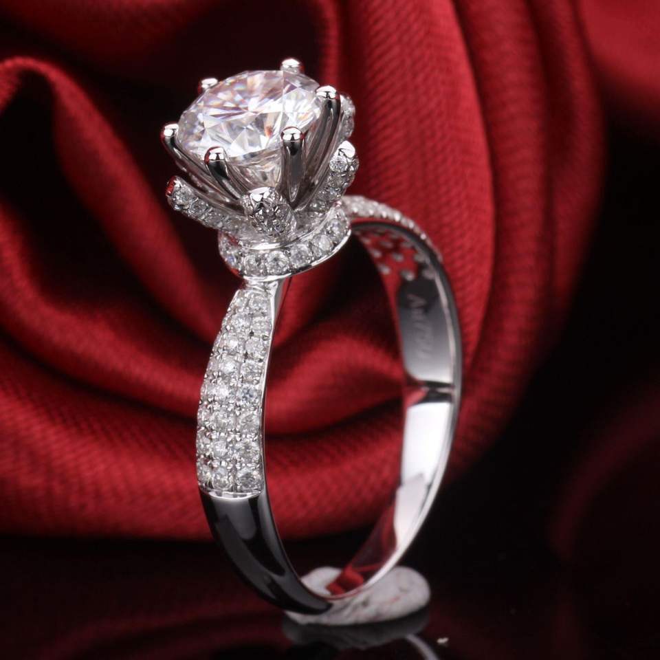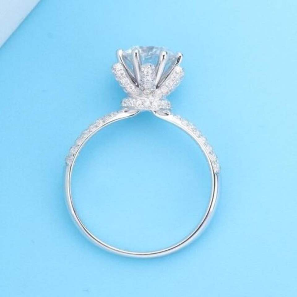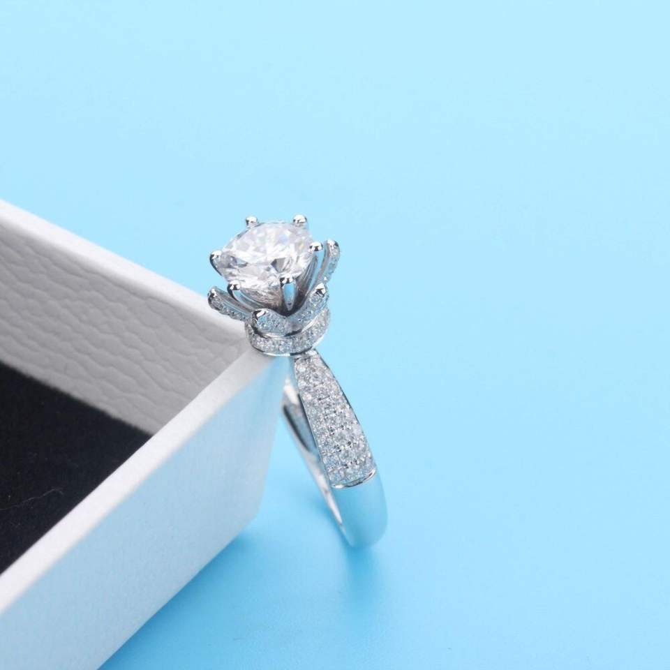 แหวนมงกุฎมอยซาไนต์โรสโกลด์ 14K สำหรับผู้หญิง RITZIN สุดหรู ดีไซน์โดดเด่น เหมาะสำหรับงานหมั้นและงานแต่งงาน